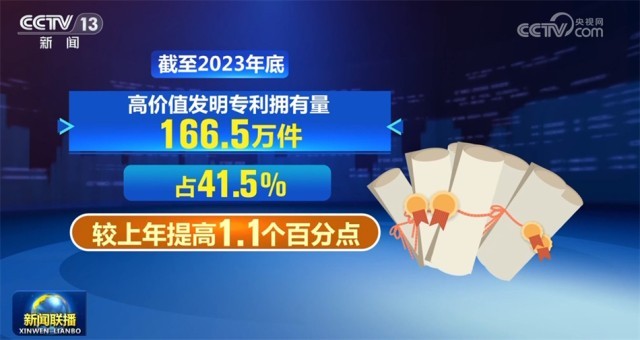 國(guó)務(wù)院新聞辦公室1月16日舉行新聞發(fā)布會(huì),國(guó)家知識(shí)產(chǎn)權(quán)局相關(guān)負(fù)責(zé)人介紹,截至2023年底,我國(guó)國(guó)內(nèi)(不含港澳臺(tái))發(fā)明專利有效量為401.5萬(wàn)件,同比增長(zhǎng)22.4%,首次超過(guò)400萬(wàn)件。其中,高價(jià)值發(fā)明專利擁有量166.5萬(wàn)件,占41.5%,較上年提高1.1個(gè)百分點(diǎn)。國(guó)內(nèi)企業(yè)擁有有效發(fā)明專利290.9萬(wàn)件,占比增至71.2%,首次超過(guò)七成,創(chuàng)新主體地位進(jìn)一步凸顯。