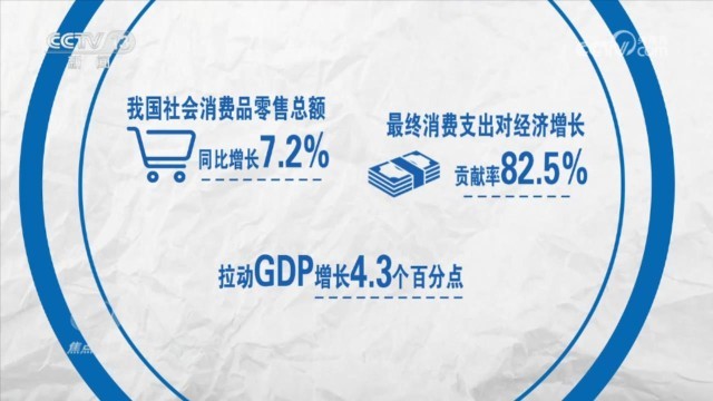 經過短暫的波動,從7月份開始,消費再次走出了企穩(wěn)回升的曲線。2023年,我國社會消費品零售總額同比增長7.2%,最終消費支出對經濟增長貢獻率達到82.5%,拉動GDP增長4.3個百分點。