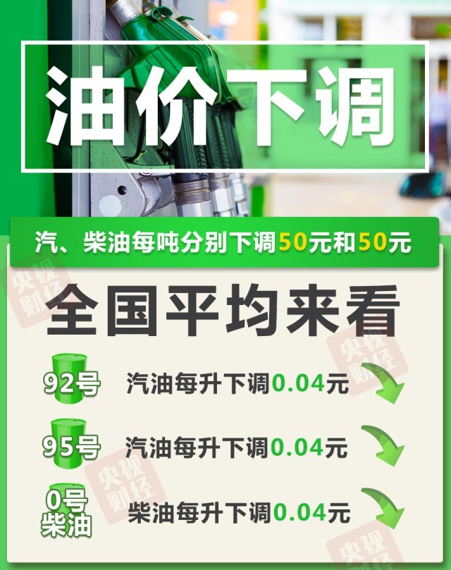 95號(hào)汽油每升下調(diào)0.04元;