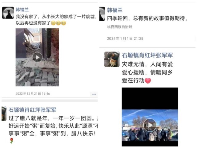 這是積石山縣部分受災群眾微信朋友圈截圖。