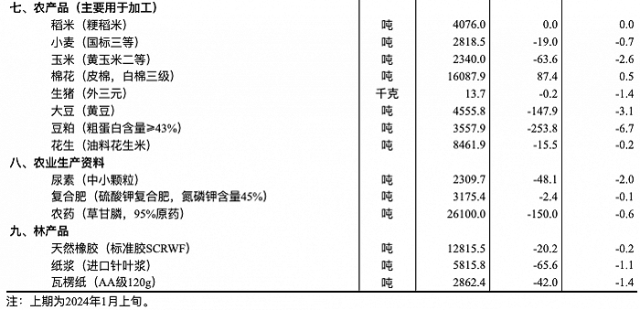 央視網(wǎng)消息:國(guó)家統(tǒng)計(jì)局發(fā)布2024年1月中旬流通領(lǐng)域重要生產(chǎn)資料市場(chǎng)價(jià)格變動(dòng)情況,詳情如下: