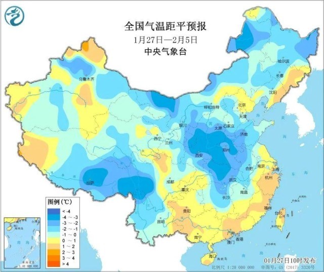 31日開始,冷空氣發(fā)力,中東部氣溫將自北向南逐步下跌,北方疊加雨雪影響,氣溫下滑明顯,到2月2日前后,冷空氣將推進到長江以南,屆時淮河以北大部最高氣溫將低于0℃,長江沿線5℃上下,氣溫從偏高轉為明顯偏低。