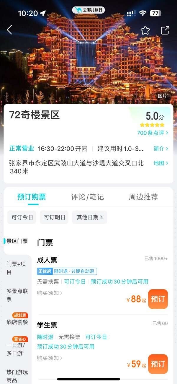 截至記者發(fā)稿時,“七十二奇樓”景區(qū)的門票在多個平臺仍處于可售狀態(tài)。