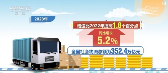 央視網(wǎng)消息:中國(guó)物流與采購(gòu)聯(lián)合會(huì)2月7日公布2023年物流運(yùn)行數(shù)據(jù)。2023年,我國(guó)經(jīng)濟(jì)在波動(dòng)中恢復(fù),穩(wěn)定因素不斷累積,物流運(yùn)行環(huán)境持續(xù)改善,行業(yè)恢復(fù)整體向好,市場(chǎng)需求規(guī)?;謴?fù)加快,全年社會(huì)物流總額超過352萬(wàn)億元。