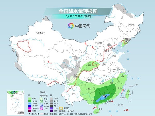 昨天,南方降雨范圍增大、強(qiáng)度增強(qiáng),華南部分地區(qū)出現(xiàn)較強(qiáng)降雨,北方大部晴朗干燥,西北地區(qū)局地出現(xiàn)較強(qiáng)降雪。監(jiān)測(cè)顯示,廣西南部、廣東中北部、江西南部等地出現(xiàn)中到大雨;青海東部、甘肅南部出現(xiàn)小到中雪或雨夾雪,局地大雪。