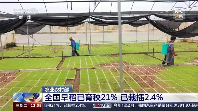 全國早稻已育秧21%,已栽插2.4%。其中,海南育秧近六成、栽插近七成;云南育秧近九成、廣東過6成、廣西福建育秧近半,零星栽插;江西、湖南零星育秧,預(yù)計(jì)3月20日之后開始大面積集中育秧。