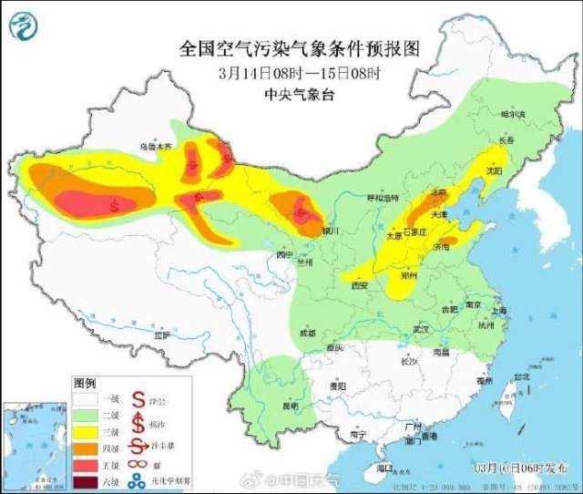 據(jù)中央氣象臺預報,14日至17日,受冷空氣大風影響,西北地區(qū)大部、華北等地自西向東有一次沙塵天氣過程。這將是今春首場沙塵天氣,也是今年來第二輪沙塵過程,上一次還是春節(jié)假期結(jié)束后的寒潮所帶來的強沙塵暴過程(2月17日-2月20日)。