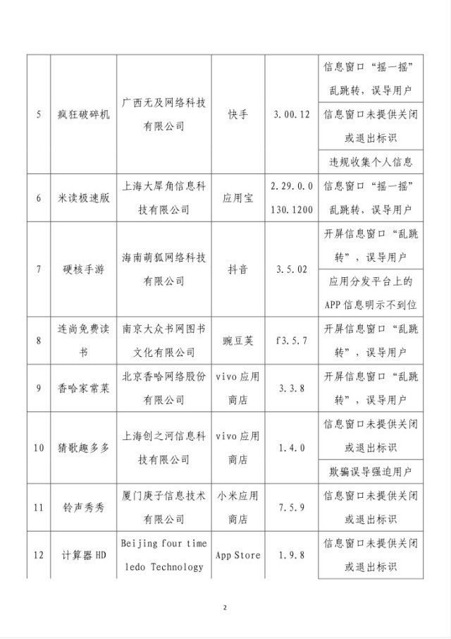 央視網(wǎng)消息:據(jù)工業(yè)和信息化部網(wǎng)站消息,工業(yè)和信息化部信息通信管理局3月14日公布《關(guān)于侵害用戶(hù)權(quán)益行為的APP(SDK)通報(bào)(2024年第2批,總第37批)》: