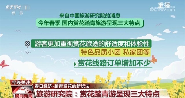 來自中國旅游研究院的消息,今年春季,國內(nèi)賞花踏青旅游呈現(xiàn)三大特點:首先,除了常見的牡丹、桃花、油菜花之外,紫荊花、櫻桃花、馬蘭花等特色花種也受到游客關注;其次,國內(nèi)各大景區(qū)推出與傳統(tǒng)文化相關的賞花踏青活動,將傳統(tǒng)習俗體驗與花季美景相結合;此外,游客也更加重視賞花旅途的舒適度和體驗性,特色品質(zhì)小團、私家團等賞花線路訂單增加不少。