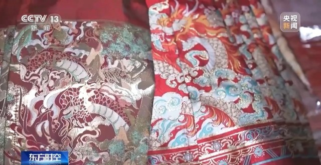 魏平安:因?yàn)榻衲赀^年是龍年,我們特意設(shè)計(jì)了兩款比較好看的龍圖案馬面裙,沒想到它們兩個(gè)都爆了。這款就是比較直接一點(diǎn),就是有一個(gè)很大的龍的刺繡加了一些龍紋,加了一些花、牡丹花之類的。