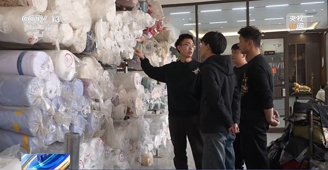 魏平安介紹,完備的產(chǎn)業(yè)鏈正是當(dāng)年吸引他回鄉(xiāng)創(chuàng)業(yè)的重要原因之一。他建議我們?nèi)ッ媪陷o料一條街轉(zhuǎn)轉(zhuǎn),他說空著手在這走5公里就能做出一件漢服。而現(xiàn)在這里依然是他采購(gòu)面料輔料的地方。
