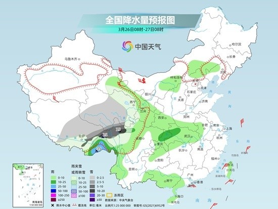 明天,西藏中東部、青海中東部、甘肅西部、川西高原北部等地部分地區(qū)有小到中雪或雨夾雪,其中,西藏東部、川西高原西北部等地部分地區(qū)有大到暴雪,局地大暴雪。內(nèi)蒙古中部、山西西北部、河北北部、遼寧西部、西藏東南部、甘肅中部和南部、寧夏南部、陜西南部、四川盆地北部、重慶大部、湖北大部、河南南部、安徽西南部、湖南北部、貴州北部、云南西部和東部、廣西南部、廣東西南部、海南島、臺(tái)灣島等地部分地區(qū)有小到中雨,其中,西藏東南部等地部分地區(qū)有大雨。