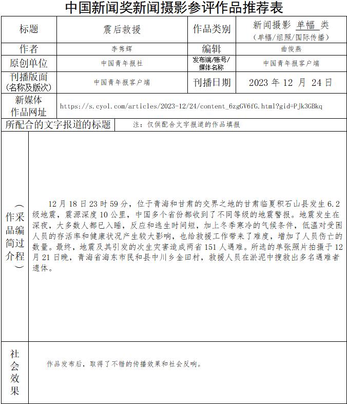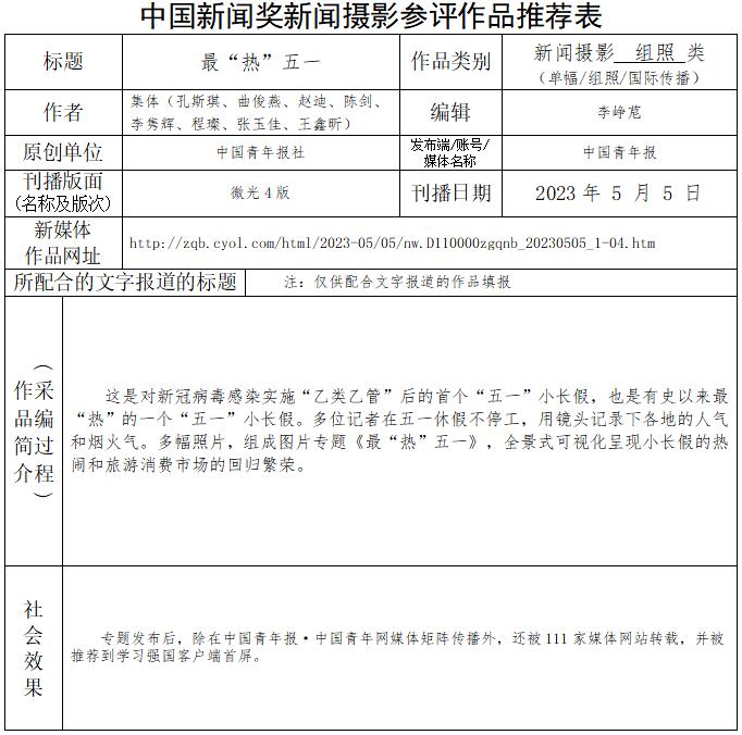中國青年報(bào)社推薦參評第34屆中國新聞獎新聞攝影作品專項(xiàng)初評公示