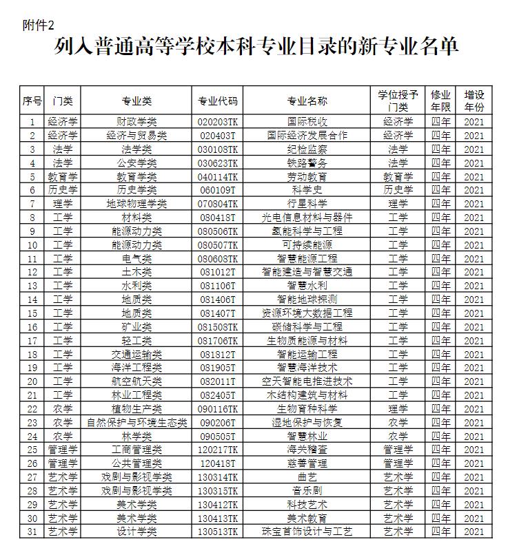 教育部:31種新專業(yè)列入《普通高等學(xué)校本科專業(yè)目錄》