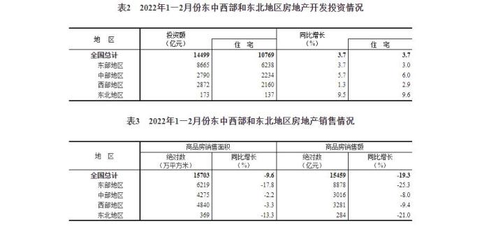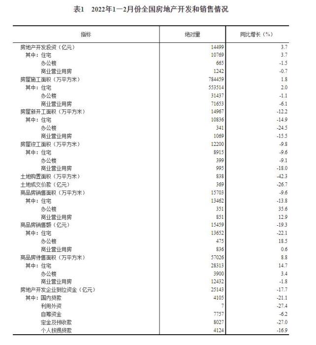 1—2月份,商品房銷售面積15703萬(wàn)平方米,同比下降9.6%,其中,住宅銷售面積下降13.8%;商品房銷售額15459億元,下降19.3%,其中,住宅銷售額下降22.1%。