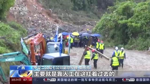 總臺央視記者 王世玉:我現(xiàn)在的位置是廣西梧州藤縣莫埌村的入口,也是通往事故核心區(qū)的一條必經(jīng)之路。大家看到在我身后的貨車正在進(jìn)行物資的裝卸,裝卸的物資是竹排。為什么要進(jìn)行竹排的運(yùn)輸呢?因?yàn)?現(xiàn)場)從昨天晚上開始就一直在降雨,可以看到路面非常泥濘,在核心區(qū)內(nèi)通行更是非常困難。施工人員想到用竹排鋪滿在路面上,方便物資和人員的運(yùn)輸和通行。