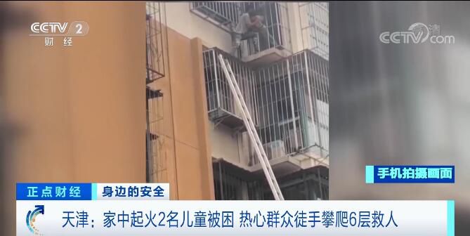 4月24日12時左右,天津市濱海新區(qū)一6層住戶家中起火,家中僅有兩名6歲和8歲的兒童在家,均被困火場,情況十分危急。此時,正在附近干活的一名裝修工人魏孝波發(fā)現(xiàn)火情后,從地面徒手攀爬樓層護欄到達起火住戶所在的六層陽臺,拆下護欄進入房間,將兩名兒童營救到陽臺外,等待消防救援。