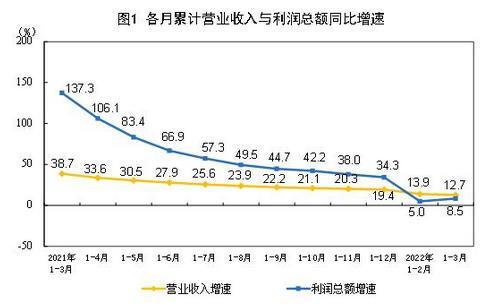 總體來(lái)看,一季度減稅降費(fèi)、助企紓困多措并舉,工業(yè)企業(yè)利潤(rùn)保持平穩(wěn)增長(zhǎng)。但也要看到,外部輸入性通脹壓力加大,新冠肺炎疫情多點(diǎn)散發(fā),給工業(yè)經(jīng)濟(jì)平穩(wěn)發(fā)展帶來(lái)諸多挑戰(zhàn),企業(yè)生產(chǎn)經(jīng)營(yíng)困難增多。一季度,規(guī)模以上工業(yè)企業(yè)利潤(rùn)增速比上年四季度回落3.8個(gè)百分點(diǎn),并且不同行業(yè)、不同類型企業(yè)間利潤(rùn)分化明顯;工業(yè)企業(yè)營(yíng)業(yè)收入增長(zhǎng)放緩,工業(yè)產(chǎn)銷銜接水平下降,企業(yè)庫(kù)存高位運(yùn)行,中小企業(yè)成本壓力仍然較大。