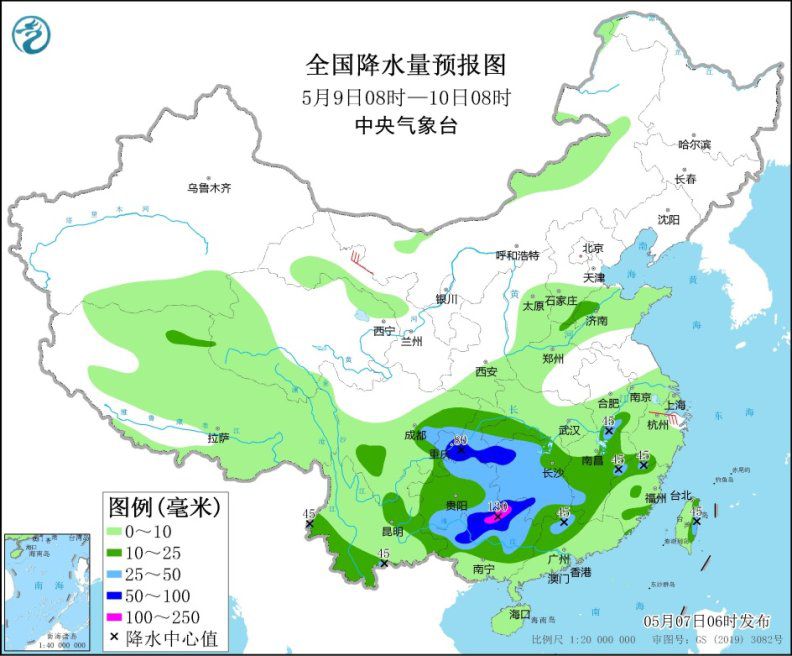 圖2 全國降水量預(yù)報圖(5月8日08時-9日08時)