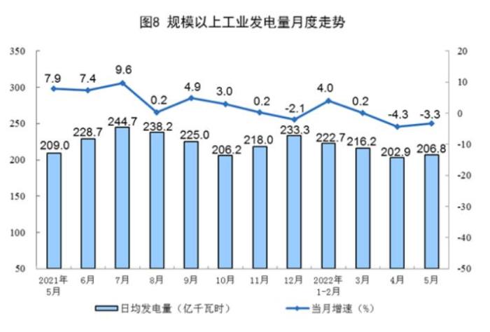 統(tǒng)計局:5月份發(fā)電6410億千瓦時 同比下降3.3%