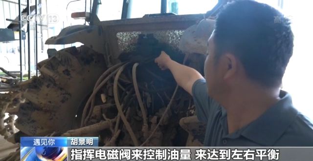 胡景明:如果農(nóng)具有一點(diǎn)傾斜,傳感器會(huì)自動(dòng)發(fā)出信號(hào)給控制器,控制器再發(fā)出信號(hào),指揮電磁閥控制油量,來(lái)達(dá)到左右平衡。