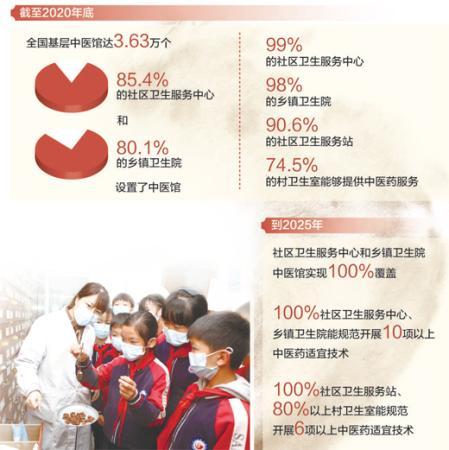 充分發(fā)揮中醫(yī)藥在基層健康服務中的獨特優(yōu)勢,中醫(yī)館的作用不容忽視。今年3月,國家中醫(yī)藥管理局等10部門聯(lián)合印發(fā)的《基層中醫(yī)藥服務能力提升工程“十四五”行動計劃》提出,到2025年,社區(qū)衛(wèi)生服務中心和鄉(xiāng)鎮(zhèn)衛(wèi)生院中醫(yī)館實現(xiàn)全覆蓋,鼓勵有條件的地方對15%的社區(qū)衛(wèi)生服務中心和鄉(xiāng)鎮(zhèn)衛(wèi)生院中醫(yī)館完成服務內(nèi)涵建設。