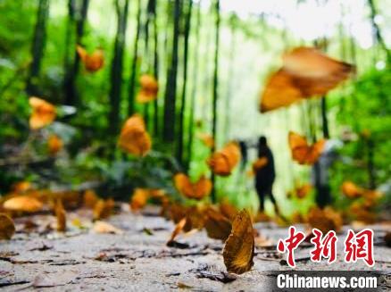 圖為金平縣的中國(guó)·紅河蝴蝶谷內(nèi)箭環(huán)蝶幼蟲(chóng)在短時(shí)間大量集中羽化成蝶?!⑷疥?yáng) 攝