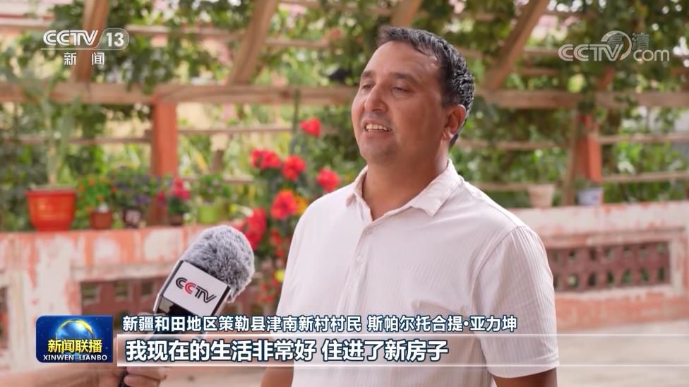 新疆和田地區(qū)策勒縣津南新村村民 斯帕爾托合提·亞力坤:我現(xiàn)在的生活非常好,住進了新房子,家里通水通電也有網(wǎng)絡(luò),家里種了兩座大棚,我還當貨車司機配送貨物,我們家一年的收入10多萬元,我覺得生活很幸福,感恩黨、感恩總書記。