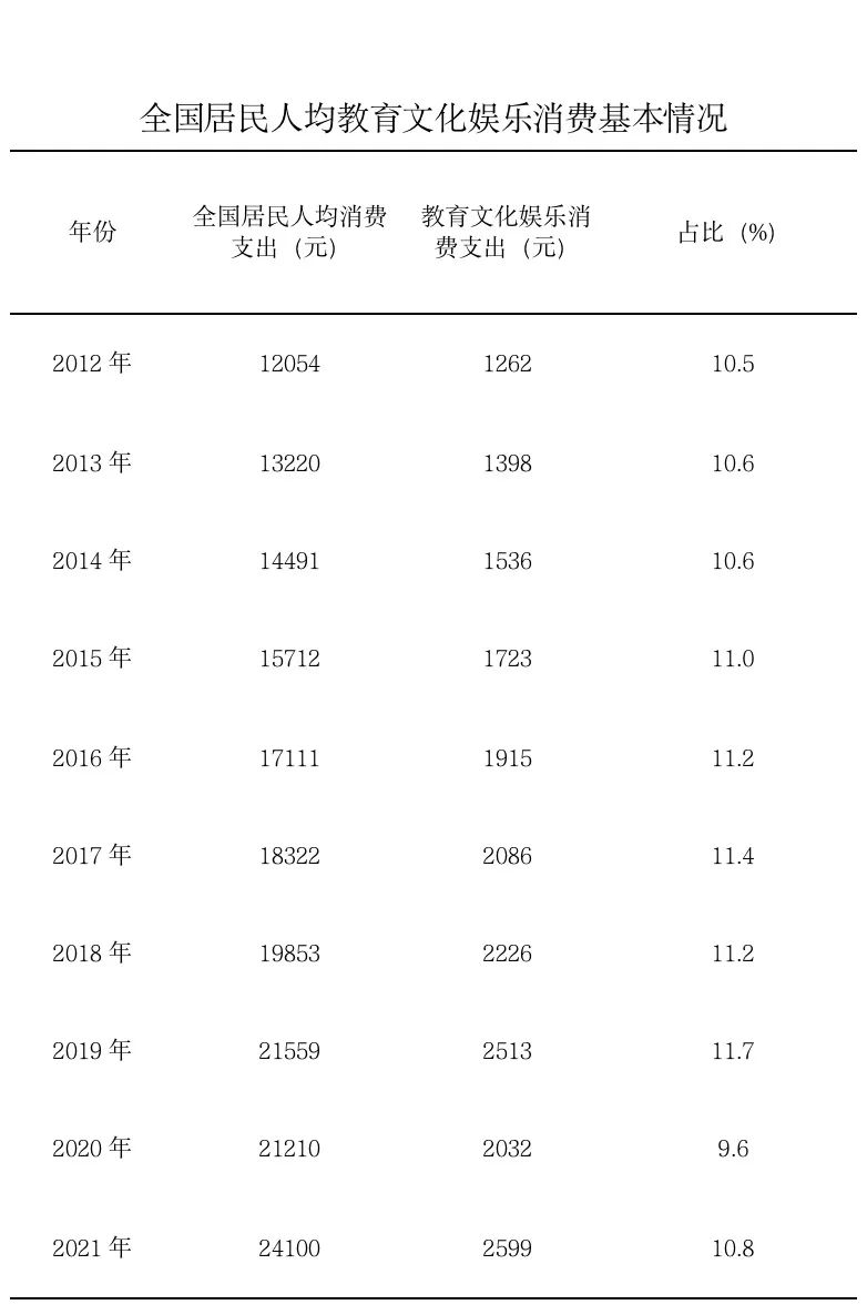 中新網(wǎng)10月14日電 據(jù)文化和旅游部官方微信公眾號(hào)消息,2021年全國(guó)居民人均教育文化娛樂(lè)消費(fèi)支出2599元,較2012年增長(zhǎng)105.9%,占人均消費(fèi)支出比重10.8%。文旅部表示,十年來(lái),文化產(chǎn)品和服務(wù)供給不斷豐富,促進(jìn)文化和旅游消費(fèi)取得顯著成效。(完)