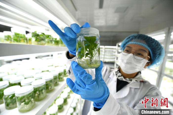 在河北中薯農(nóng)業(yè)科技集團(tuán)股份有限公司甘薯脫毒組培中心,技術(shù)員查看脫毒苗生長情況?!∴嵆孔?攝