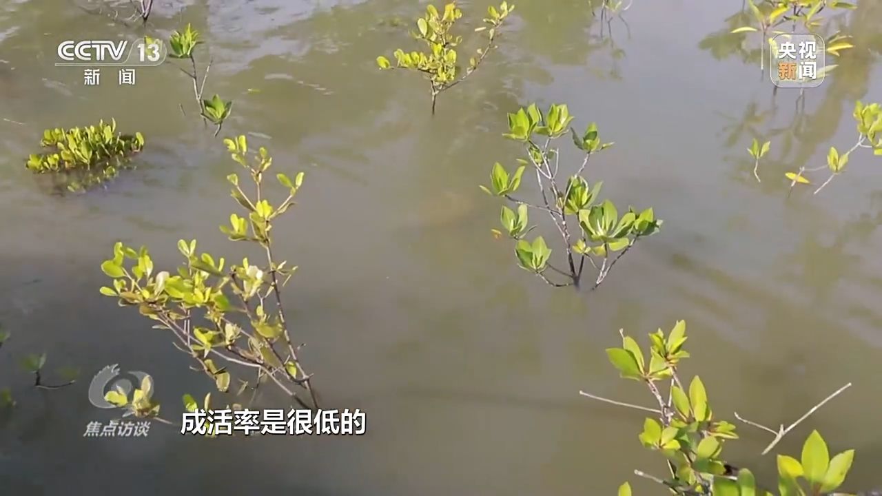 海南東寨港國(guó)家級(jí)自然保護(hù)區(qū)管理局林業(yè)工程師 馮爾輝:紅樹(shù)林胚軸要在母樹(shù)上發(fā)育成一個(gè)個(gè)體,然后再掉下來(lái),掉到海水里面隨波逐流,成活率是很低的。
