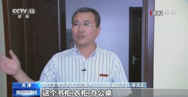 時任天津市西青區(qū)紀委黨風政風監(jiān)督室主任 李文彩:進來以后我們可以看到,書柜、衣柜、辦公桌跟普通的這個辦公用房是一模一樣的。在勘查的過程當中,我們發(fā)現(xiàn)這個衣柜透出一道亮光,我們覺得挺可疑,打開以后里面掛著衣服,這個衣柜沒有了后擋板,直通里間,儼然就是一個暗門。這個里間里邊,床鋪、電視、衣柜、冰箱、衛(wèi)生間、洗浴設施一應俱全的。