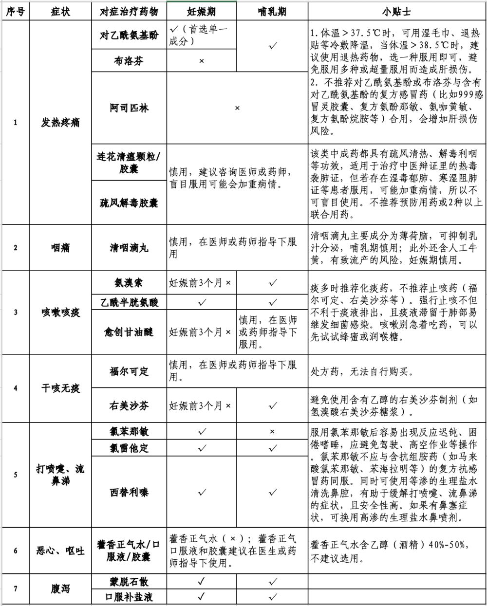 具體有哪些常備藥物適合孕期的“準媽媽”和哺乳期媽媽應(yīng)對新冠呢?請參考陸軍軍醫(yī)大學(xué)陸軍特色醫(yī)學(xué)中心藥劑科整理的用藥指南。