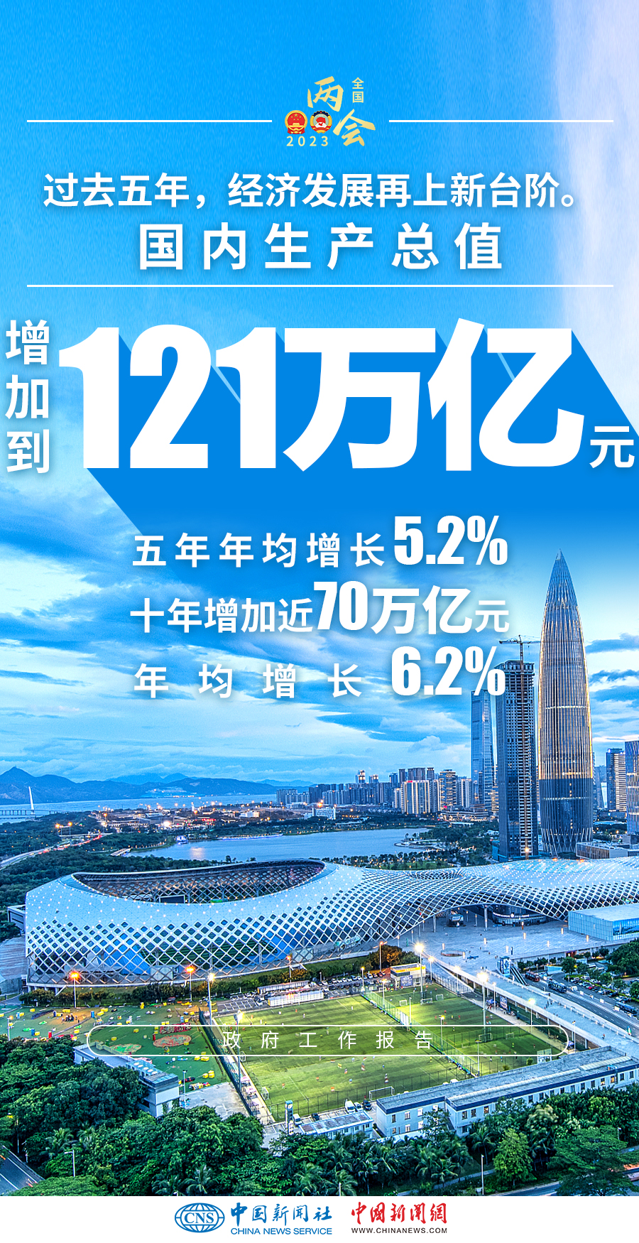 ——國(guó)內(nèi)生產(chǎn)總值增加到121萬(wàn)億元,五年年均增長(zhǎng)5.2%