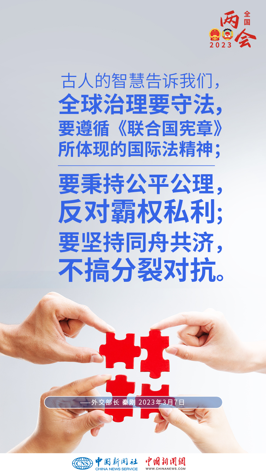 秦剛:古人的智慧告訴我們,全球治理要守法,要遵循《聯(lián)合國(guó)憲章》所體現(xiàn)的國(guó)際法精神;要秉持公平公理,反對(duì)霸權(quán)私利;要堅(jiān)持同舟共濟(jì),不搞分裂對(duì)抗。