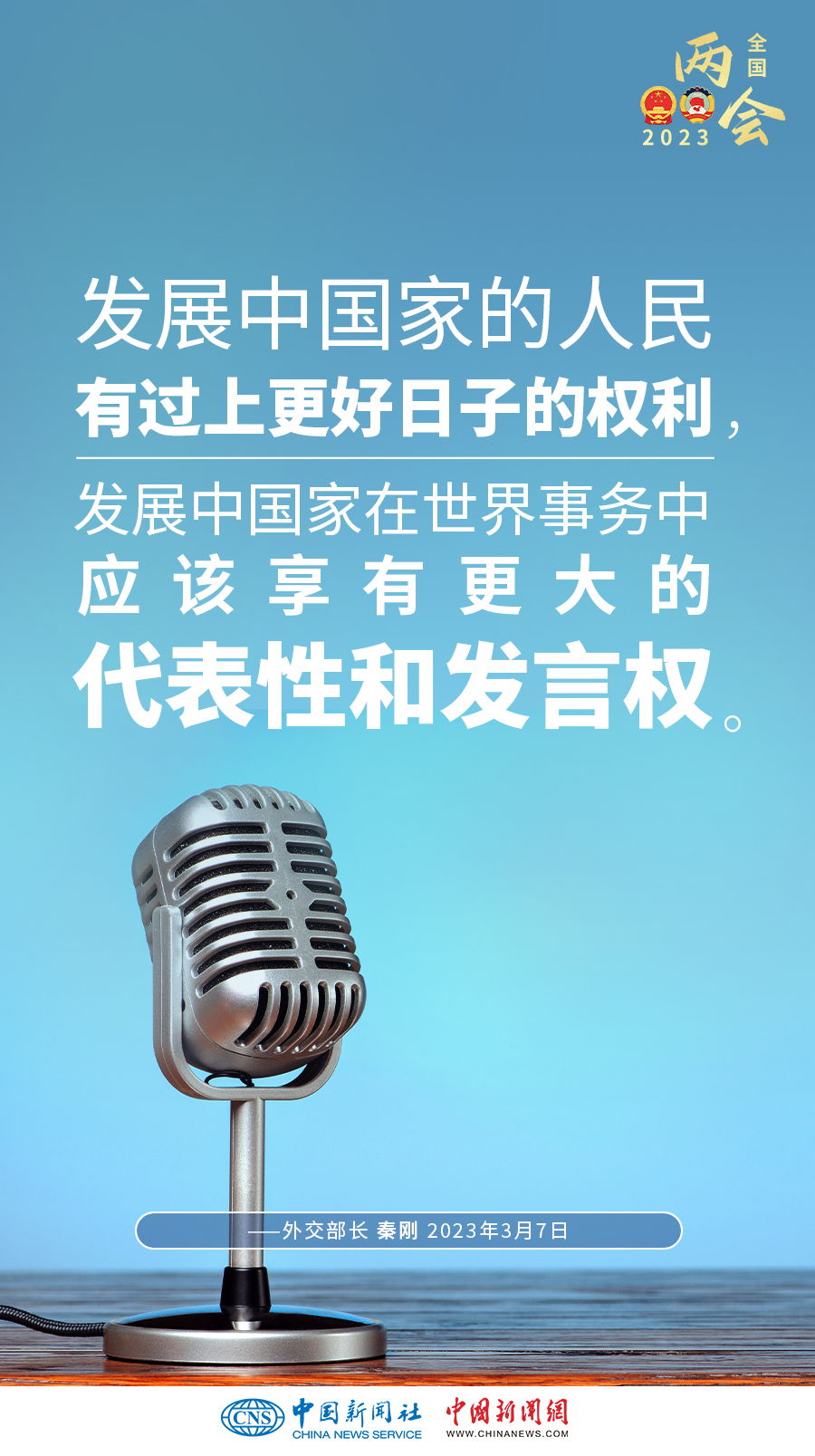 秦剛:發(fā)展中國(guó)家占世界人口總數(shù)的80%以上,對(duì)世界經(jīng)濟(jì)增長(zhǎng)的貢獻(xiàn)率超過(guò)70%。發(fā)展中國(guó)家的人民有過(guò)上更好日子的權(quán)利,發(fā)展中國(guó)家在世界事務(wù)中應(yīng)該享有更大的代表性和發(fā)言權(quán)。