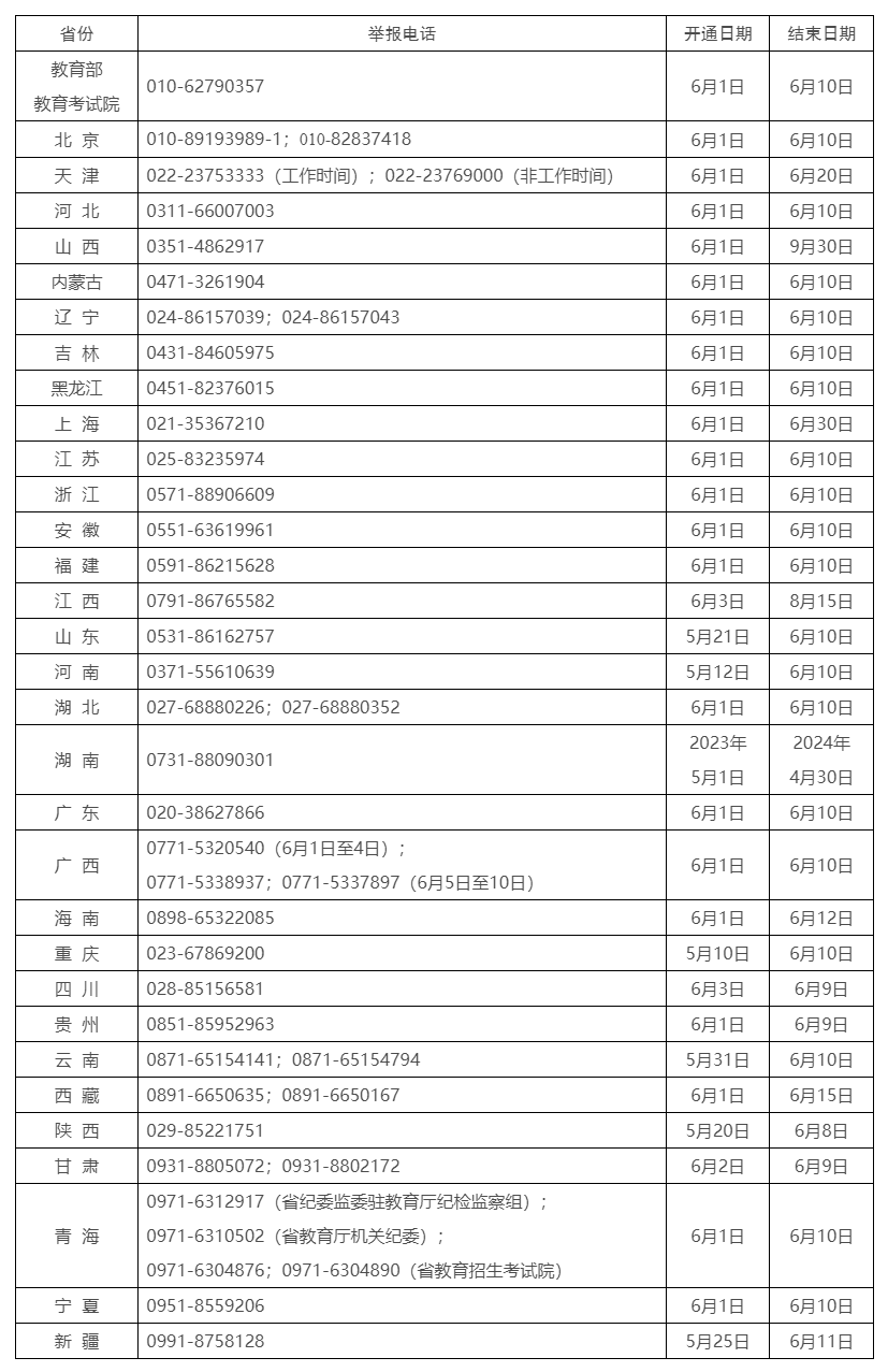 教育部和各?。▍^(qū)、市)開通2023年高考舉報電話