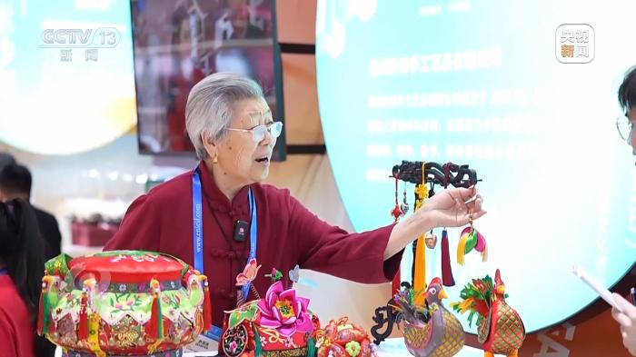 在江蘇展區(qū),一位正在做針線活的白發(fā)老人引人注目,她是江蘇省級(jí)非遺項(xiàng)目傳承人王秀英。王奶奶做的徐州香包名字叫做針棒,有著豐厚的文化蘊(yùn)涵和文化價(jià)值,入選第一批國(guó)家級(jí)非物質(zhì)文化遺產(chǎn)擴(kuò)展項(xiàng)目名錄。這次和王奶奶一同來(lái)參展的還有她的孫女孫歌堯。在學(xué)習(xí)傳統(tǒng)工藝的同時(shí),孫歌堯大膽創(chuàng)新,嘗試融入更多技法和材質(zhì)。