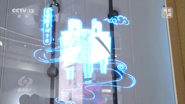 在AI繪畫(huà)一旁,國(guó)家級(jí)保護(hù)文物司母戊大方鼎、青銅縱目面具、四羊方尊、越王勾踐劍、曾侯乙編鐘等正以數(shù)字化形式呈現(xiàn)在觀眾面前。參展商通過(guò)數(shù)字孿生技術(shù)復(fù)現(xiàn)或重構(gòu)文物和文化遺產(chǎn)的數(shù)字鏡像,從而實(shí)現(xiàn)文物和文化遺產(chǎn)的保護(hù)、修復(fù)直至永久性保存和活態(tài)化傳承。觀眾既可以看到部分真實(shí)的復(fù)制文物和文化遺產(chǎn),又可以體驗(yàn)虛擬的數(shù)字文物和文化遺產(chǎn),虛實(shí)之間,體會(huì)數(shù)字化給傳統(tǒng)文物和文化遺產(chǎn)帶來(lái)的生命力。