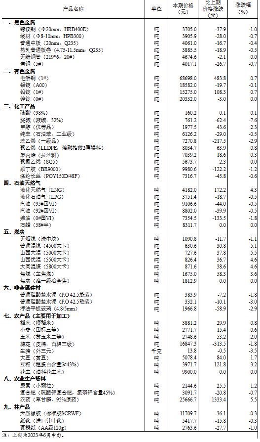 2023年6月下旬流通領域重要生產(chǎn)資料市場價格變動情況