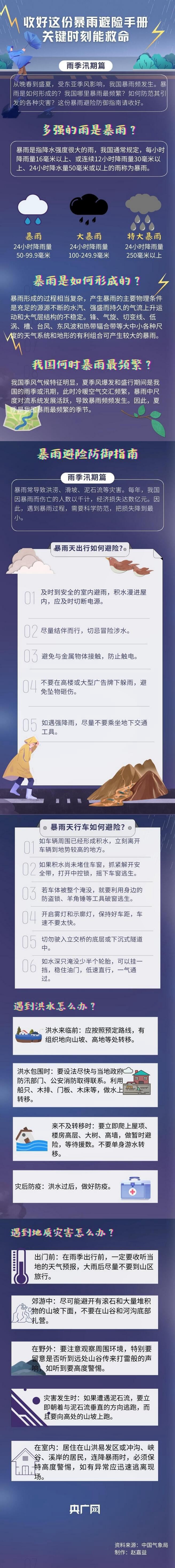 央廣網長春7月5日消息(記者郭東隅)正值汛期,我國多地遭遇今年以來最強降雨過程,出現暴雨、大暴雨甚至特大暴雨。那么,暴雨究竟是如何形成的?如何防范其引發(fā)的各種災害?這份暴雨避險防御指南請收好,關鍵時刻能救命。