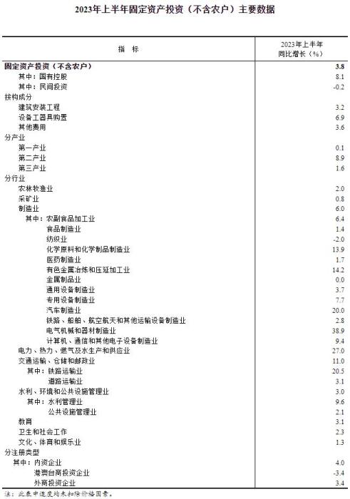 國家統(tǒng)計局:上半年全國固定資產投資增長3.8%