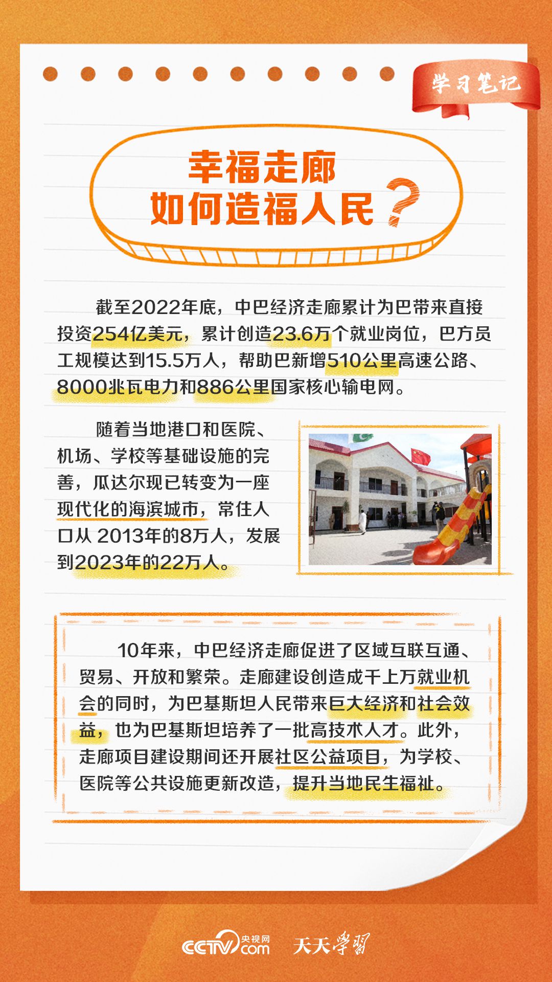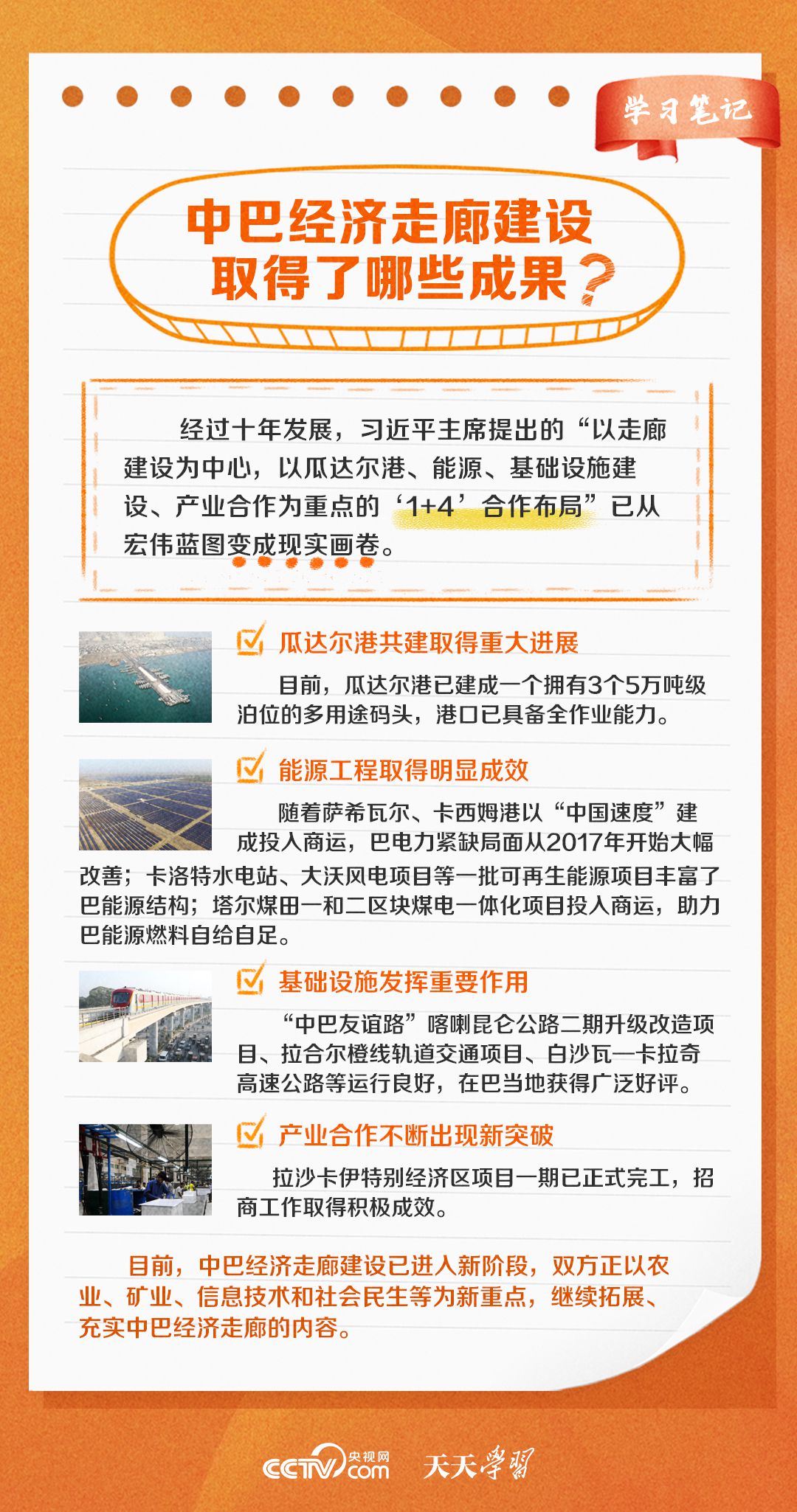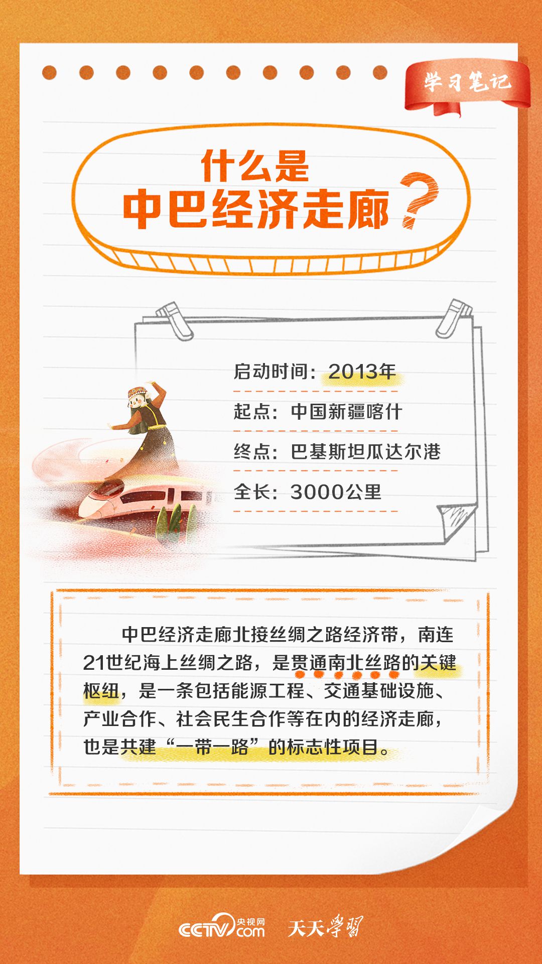 今年是習(xí)近平主席提出共建“一帶一路”倡議十周年,也是中巴經(jīng)濟(jì)走廊啟動十周年。經(jīng)過十年的發(fā)展,中巴經(jīng)濟(jì)走廊已成為中巴友誼“新標(biāo)桿”。央視網(wǎng)《天天學(xué)習(xí)·學(xué)習(xí)筆記》特梳理中巴經(jīng)濟(jì)走廊相關(guān)知識點(diǎn),與您一起學(xué)習(xí)。