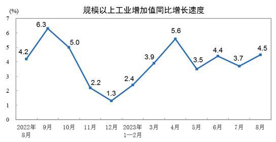 國(guó)家統(tǒng)計(jì)局:8月份規(guī)模以上工業(yè)增加值增長(zhǎng)4.5%