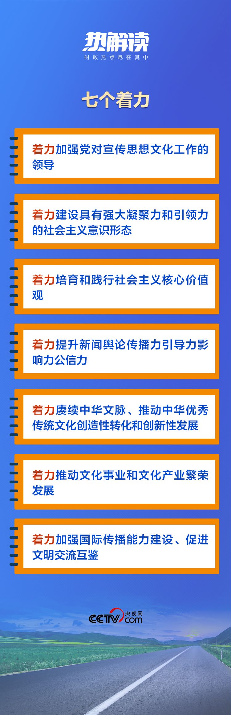 在這次對宣傳思想文化工作的重要指示中,總書記提出了“七個著力”的重要要求,為新時代文化建設(shè)明確了路線圖和任務(wù)書。