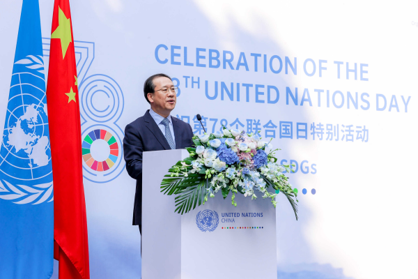 2023年10月23日,外交部副部長馬朝旭出席聯(lián)合國發(fā)展系統(tǒng)駐華協(xié)調員舉辦的“聯(lián)合國日”慶?;顒硬l(fā)表致辭。