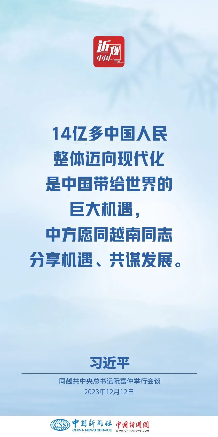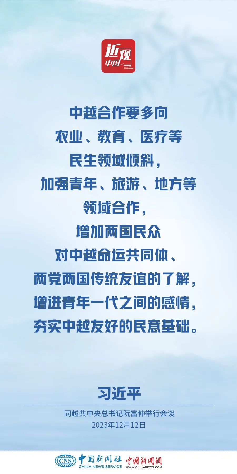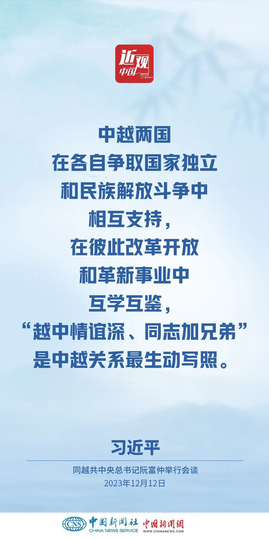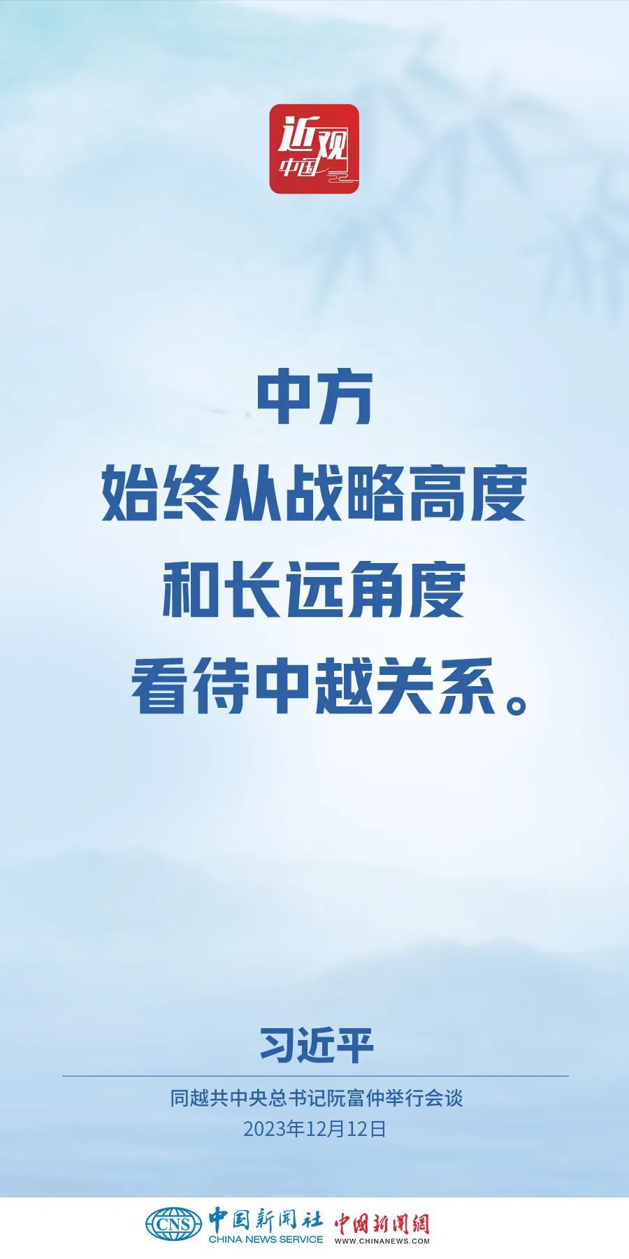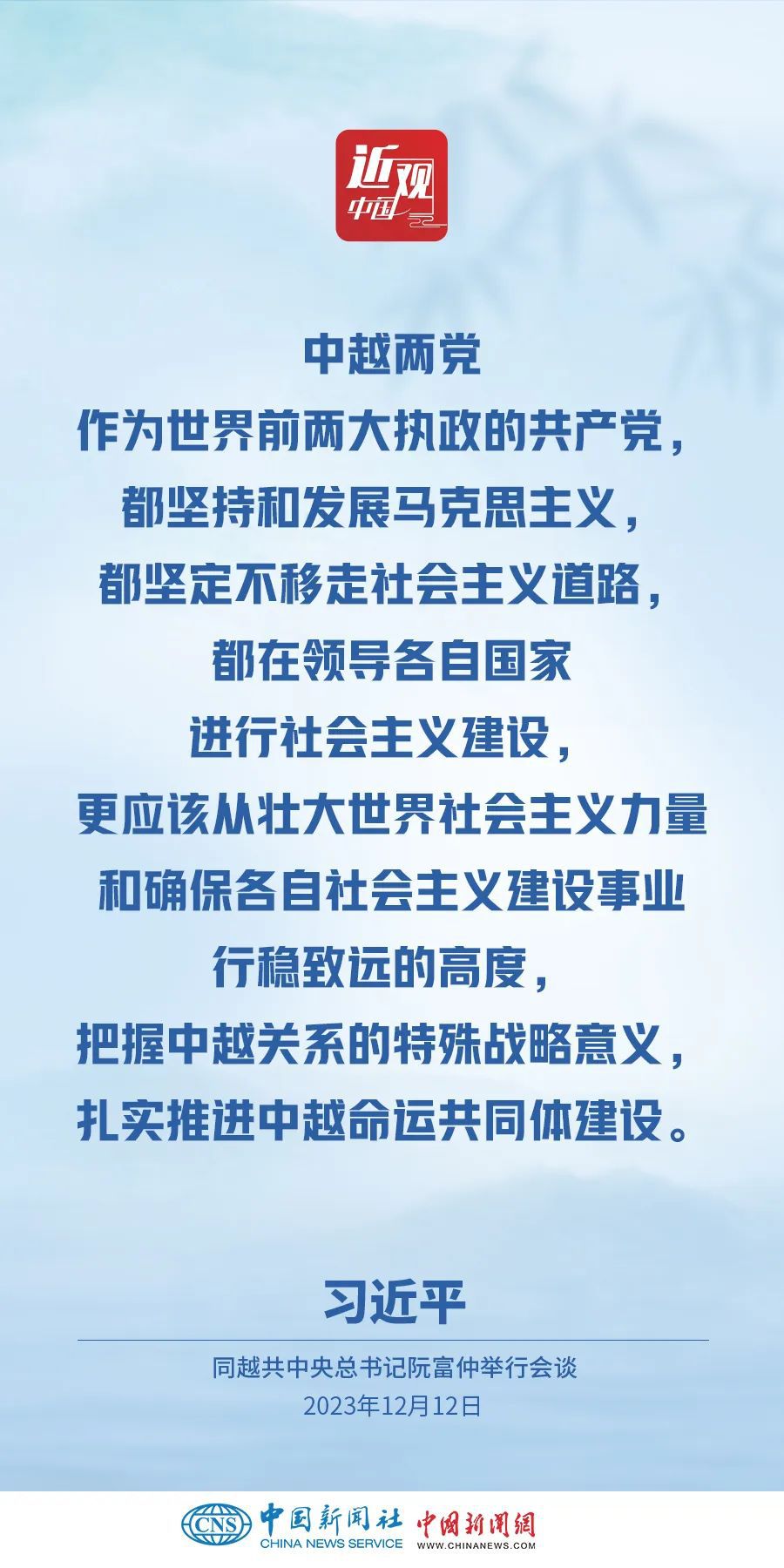 當(dāng)?shù)貢r間12月12日下午,剛剛抵達(dá)河內(nèi)的中共中央總書記、國家主席習(xí)近平在越共中央駐地同越共中央總書記阮富仲舉行會談。雙方宣布中越兩黨兩國關(guān)系新定位,在深化中越全面戰(zhàn)略合作伙伴關(guān)系基礎(chǔ)上,攜手構(gòu)建具有戰(zhàn)略意義的中越命運共同體。習(xí)近平指出——
