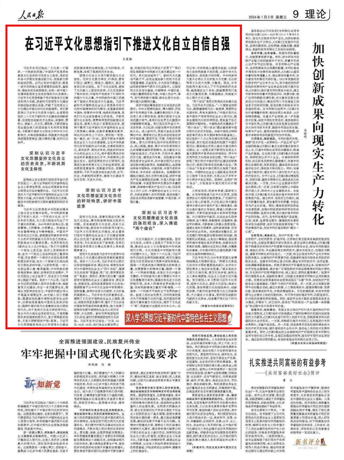 人民日報刊發(fā)王蒙徽署名文章:在習(xí)近平文化思想指引下推進文化自立自信自強