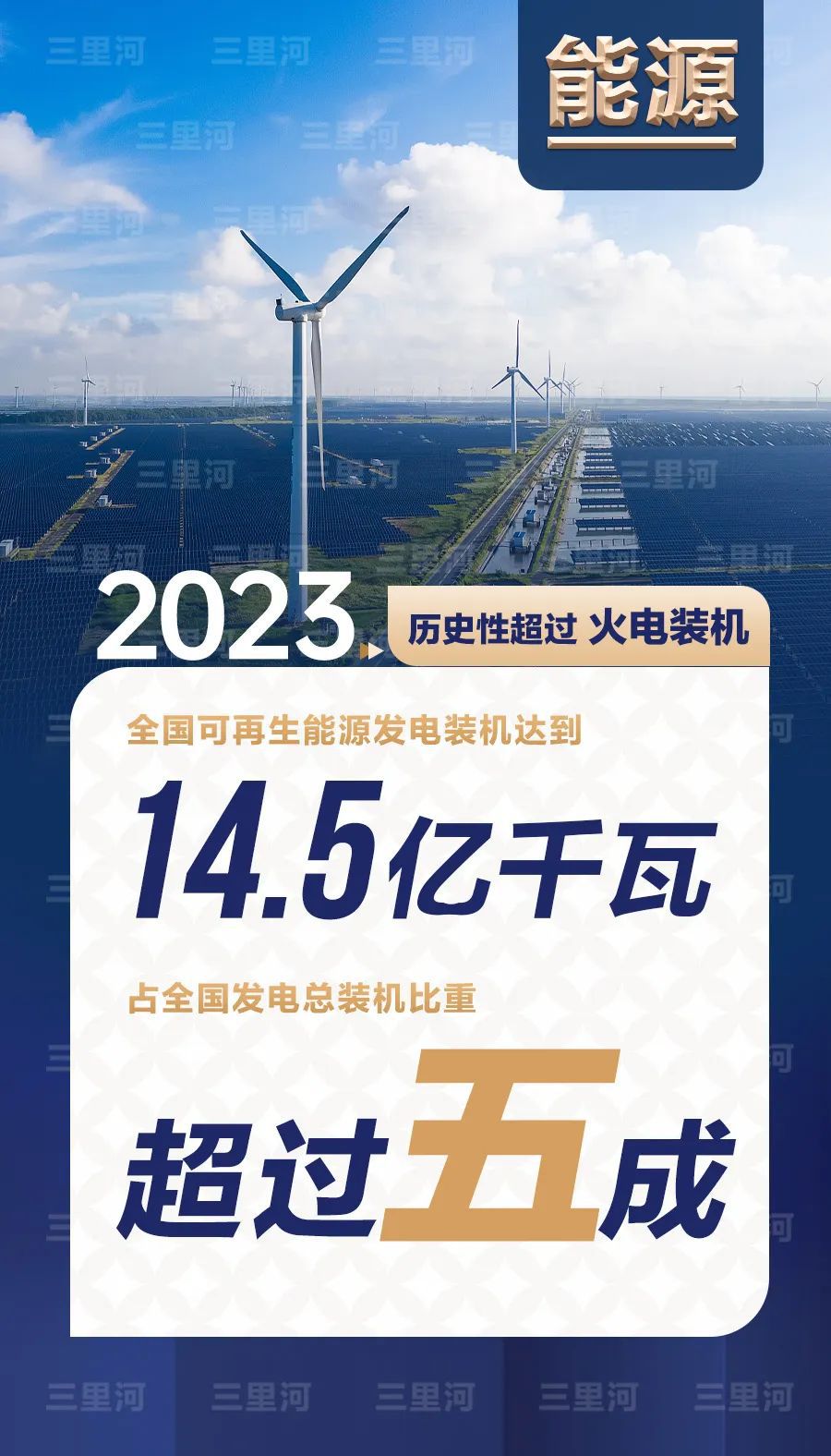 2023年,全國(guó)可再生能源發(fā)電裝機(jī)達(dá)到14.5億千瓦,占全國(guó)發(fā)電總裝機(jī)比重超過五成,歷史性超過火電裝機(jī)。