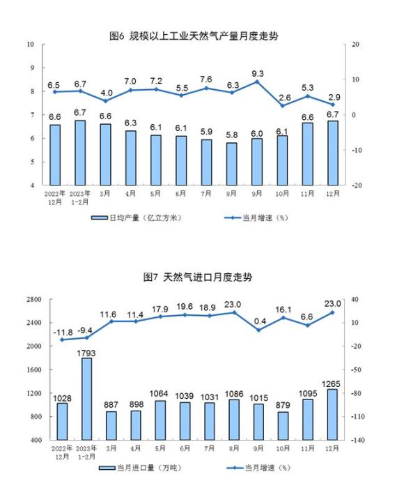 2023年,規(guī)上工業(yè)天然氣產(chǎn)量2297億立方米,同比增長(zhǎng)5.8%。進(jìn)口天然氣11997萬(wàn)噸,同比增長(zhǎng)9.9%。